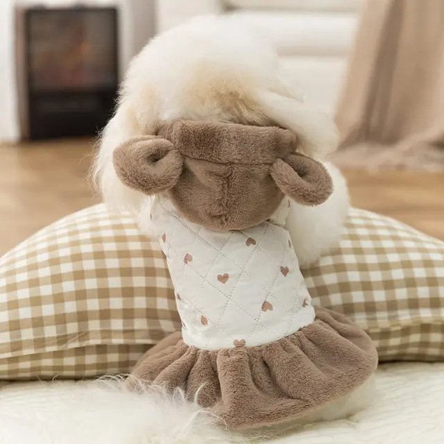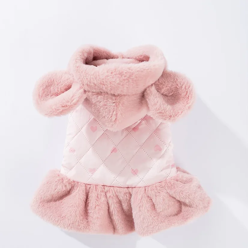 Chaqueta cálida de felpa con capucha para mascotas, abrigo de invierno y otoño, bonito vestido para perros, ropa de princesa para perros pequeños